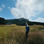 The accommodation offers self-catering amenities, such as a fully-equipped kitchen, and an outdoor dining area for guests' convenience. There is a terrace with views of the mountain.